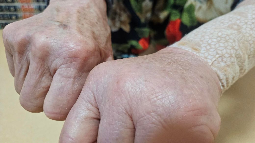 할머니께서 손이 심하게 부었습니다.