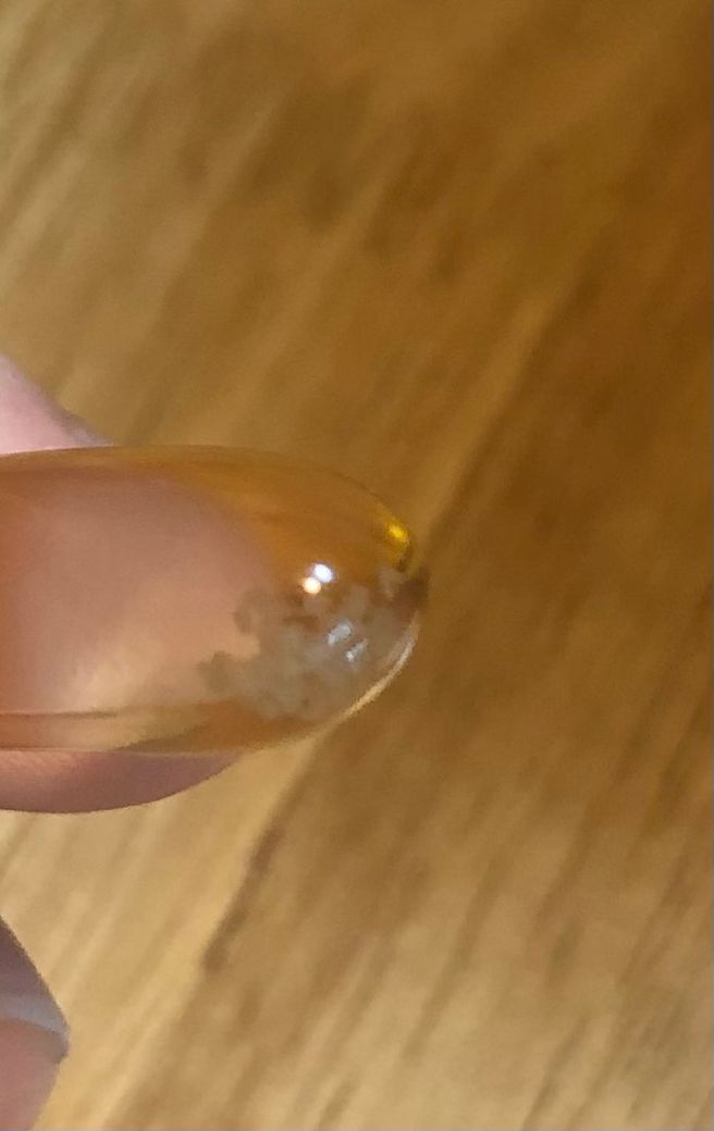 산패된것같은데 어떤건지 봐주세요 기포가 아니라 하얀점이 알약안에 생겼네요 ... 그리고 감마리놀렌산이 냄새가 안 난다고 그러던데 병원에서 처방받은것과 인터넷에 구매한제품 모두 알약을 뜯어보면 비린내가 납니다