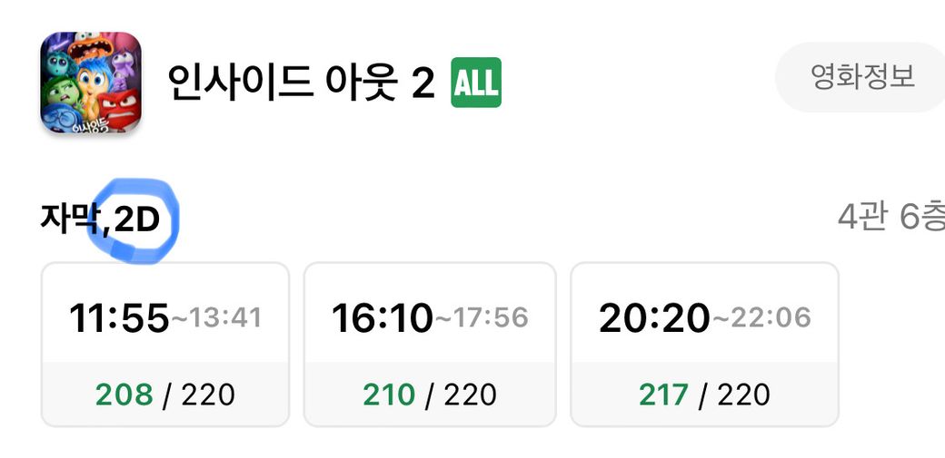 인사이드 아웃2 밑에 자막,2D라고 적혀있어서요