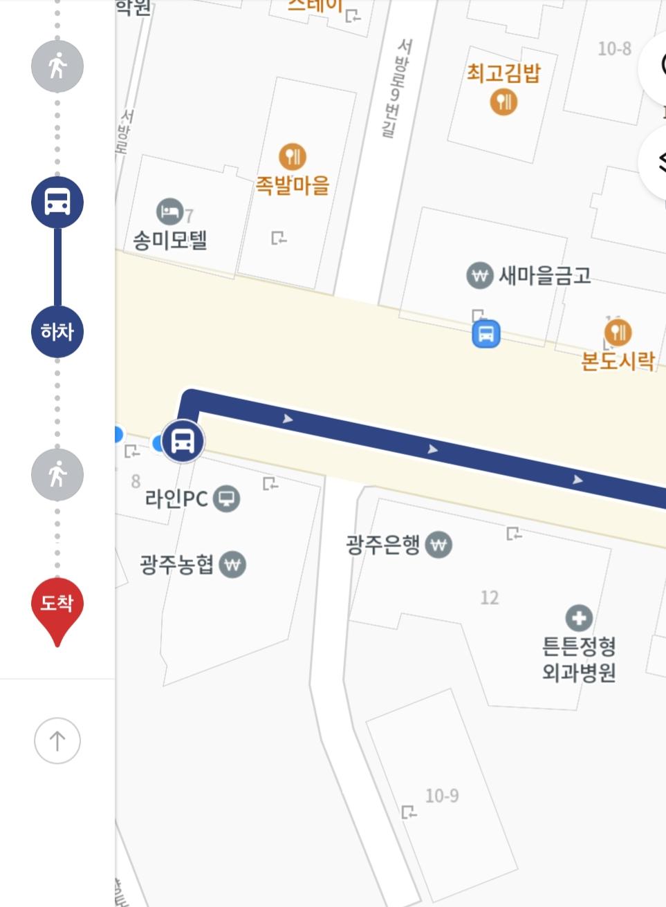 저 사진을 보시면 제버스정류장쪽엔 광주은행이 있고, 반대편엔 새마을금고가 있어야합니다. 실제로 그 건물이 있는지 확인하고 맞다면 타시면됩니다.