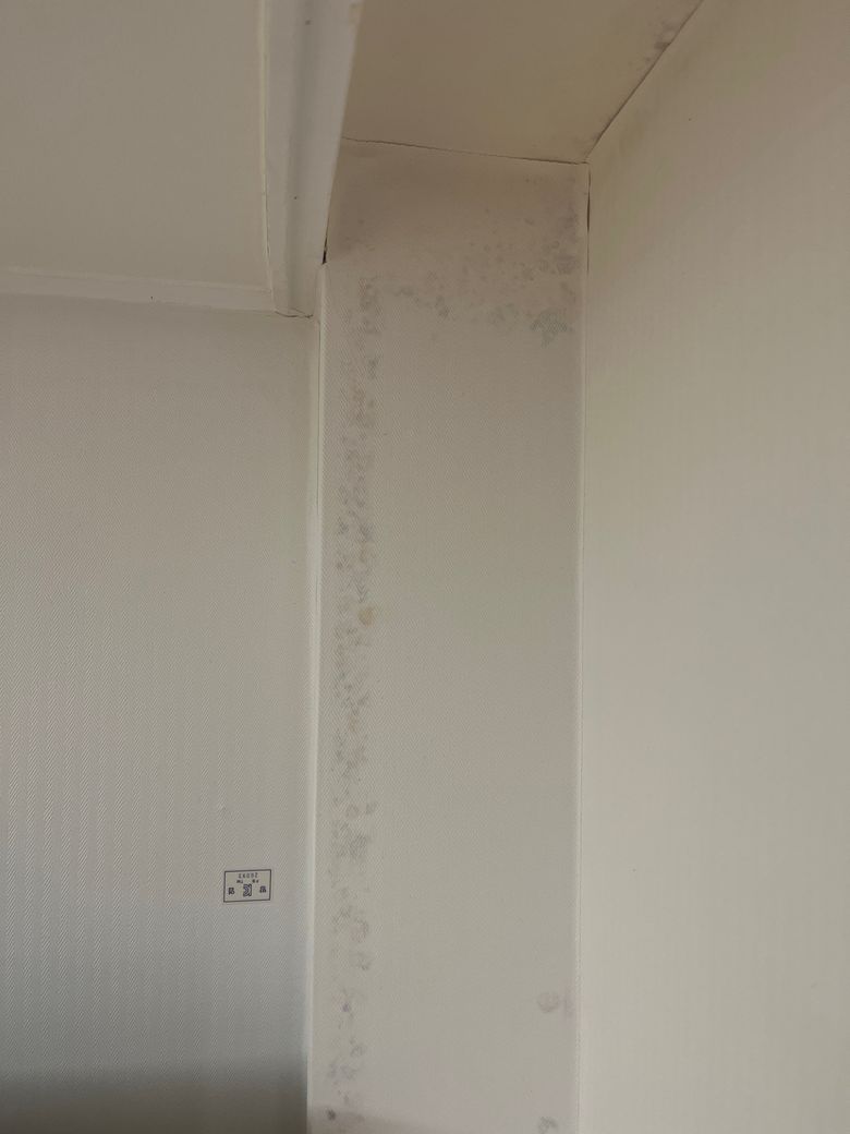 몇 주 사이에 생긴 것 같은데ㅠㅠ 갑자기 이런 푸릇한 곰팡이가 올라온 걸 발견했어요, 물티슈로도 안 닦이는 걸 보니 벽지 뒤에 생긴 거 같은데...