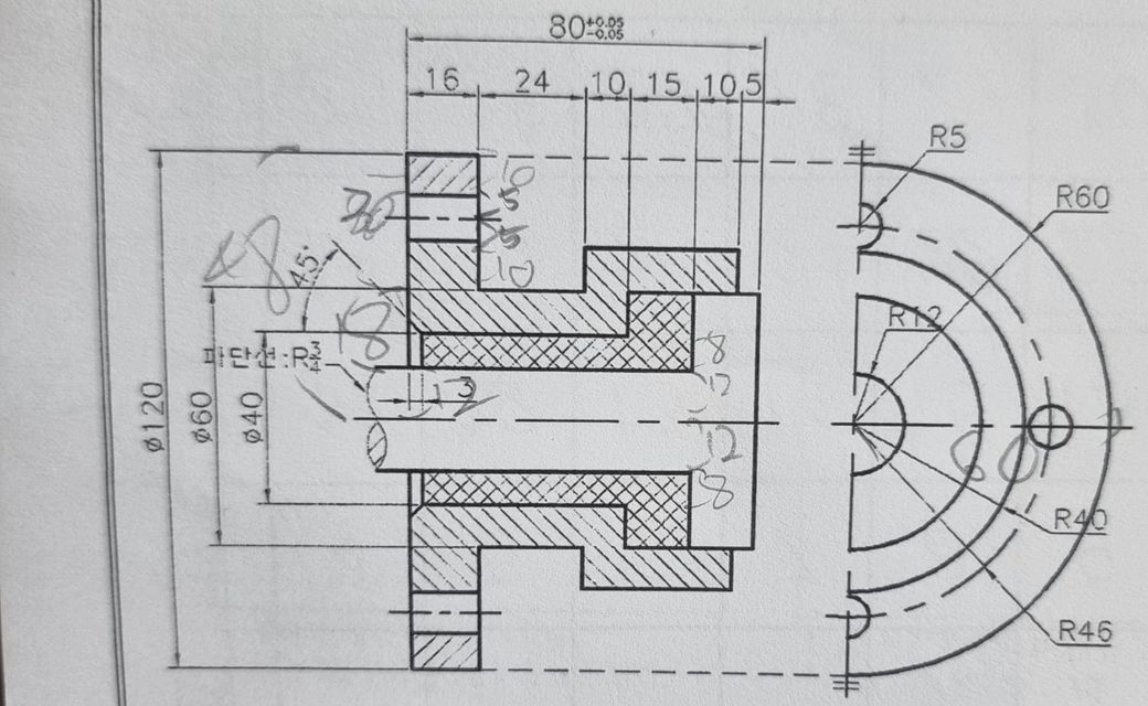 오토 캐드가 처음인 사람입니다. 첨부한 사진 속에 있는 도형을 그리려고 합니다. 사진 왼쪽에 있는 도형과 오른쪽 반 원 사이의 거리를 도무지 알아낼 수 가 없습니다. 능력자 분들의 도움을 구합니다.