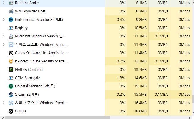 요근래 윈도우 업뎃 마우스와 그래픽 드라이버 업뎃 멀쩡 하다 갑자기 어떠한 감도나 윈도우 설정을 만지지 않았음에도 평상시엔 멀쩡하나 한 가지가 아닌 유독 FPS 여러 게임에서 슬라이딩 한 뒤 한 번씩 좌클 도중 우클을 꾹 누르고 약간 마우스를 옆으로 돌릴 경우 마우스 잡는 느낌이 부드럽게 움직이지 아니 하고 그 상태서 굳습니다 ㅠㅠ 마우스 피트 패드 usb 포트 변경 새 g102 사용 죄다 해보았습니다 ㅠㅠ 로지텍 g hub 앱을 이제 알아 매크로 같은 건 설정해 본 적두 없었구요 앱 또한 사용해 보았지만 증상은 여전하였습니다… 소프트웨어 충돌일 수도 있다는 말씀에 클린 부팅도 해보았는데 마이크로소프트 앱 외의 앱들에 의해 생긴 문제는 아닌 것 같습니다 하여 ㅠㅠ 혹시 컴퓨터 부팅시 백그라운드 이 중의 앱들 사이서 문제가 될 것이 있을까 여쭈어 봅니다… 아님 일상 사용 중 삭제 해도 될 만한 것을 알려 주실 수 있을까요 부탁 드려요