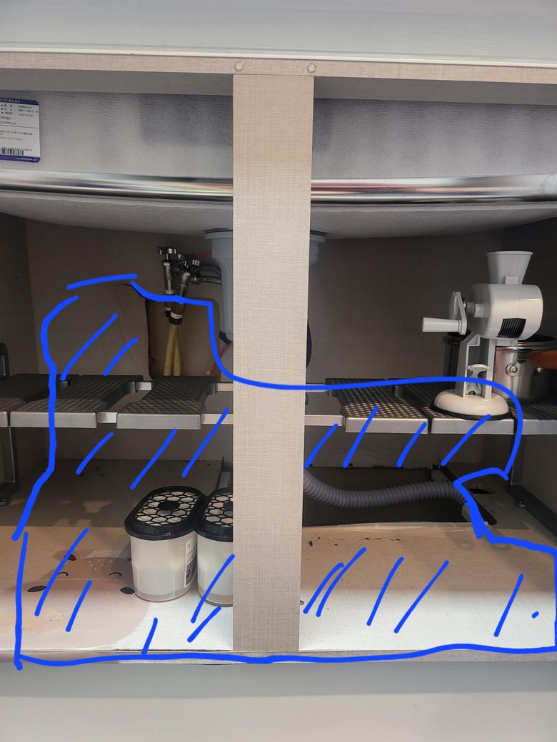 씽크대 씽크볼 아래가 일부 젖어 있어서 확인 해봤습니다.