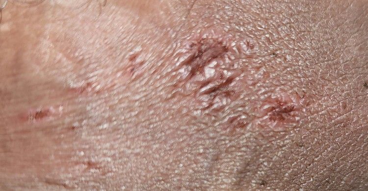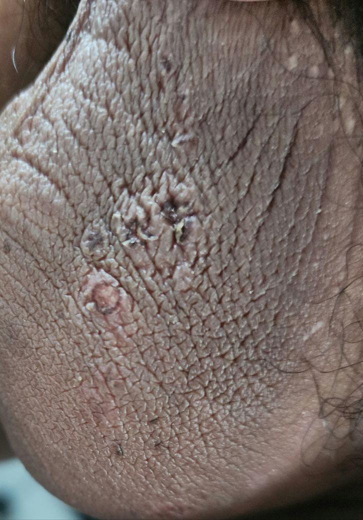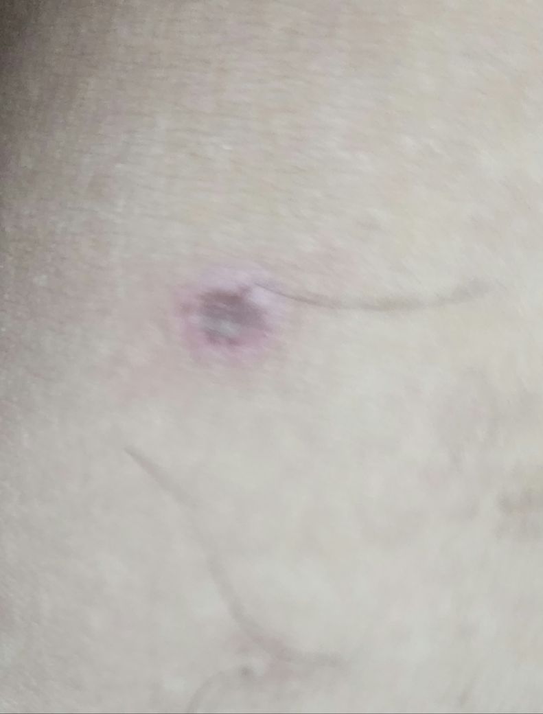 현재 딱지가 점점 생기는과정이고 3번째 사진은 환부와 닿는부위(안쪽허벅지) 가 비슷하게 궤양이 올라온것입니다.