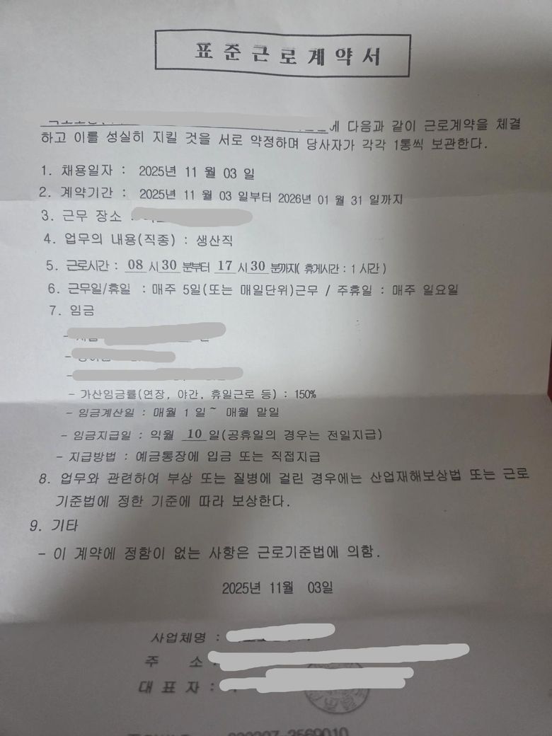 일단 제가 1월부터 3월까지 단기직 근로 계약서를 쓰고 들어갔다가 인력 부족으로 3월 이후로도 9월까지 일하고 퇴사했습니다