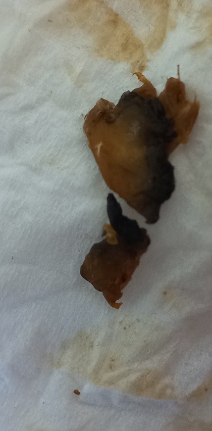 사진상으로 정확하지는 않으나 흑변일 가능성도 배제할 수 없을 것 같습니다. 흑변의 경우 드신 음식물의 영향도 있을 수 있지만 체내 출혈, 특히 상부 위장관의 출혈로 인해 발생했을 가능성도 생각해보아야합니다.