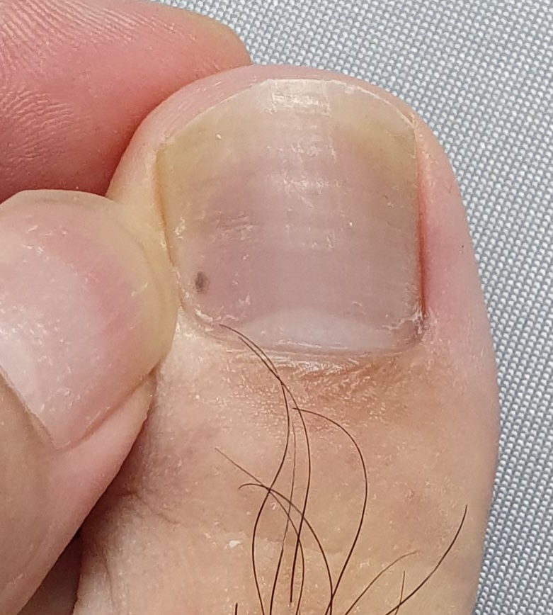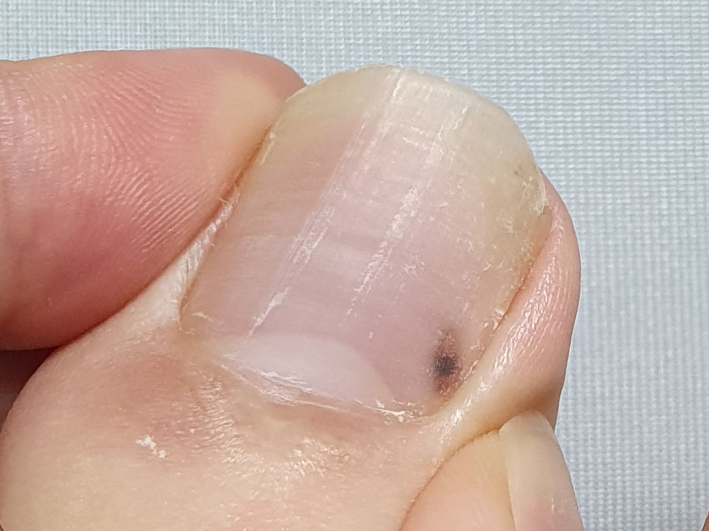 발톱의 작은 색 변화 때문에 걱정이시군요.