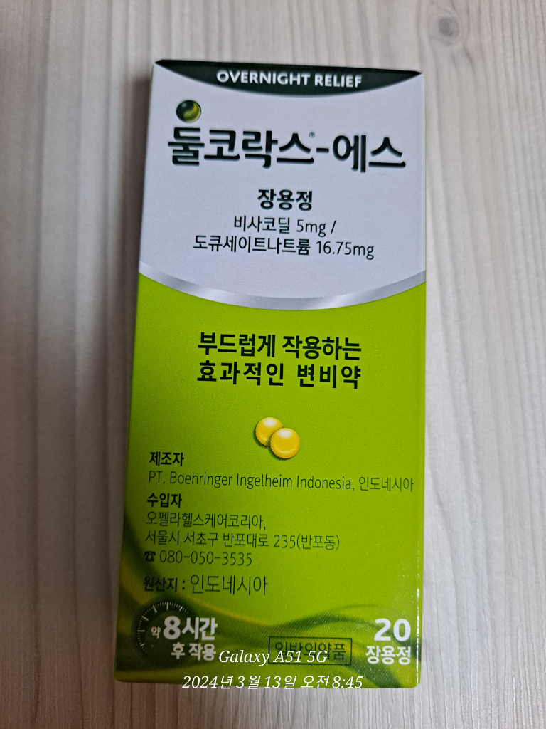 변비약의 종류로는 돌코락스-에스 장용정 2알, 입니다.