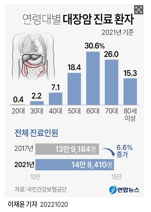 고려하면 이 두개를 제외하였을 때 대장암 발생률이 얼마나 높은지를 확인하실 수 있습니다.