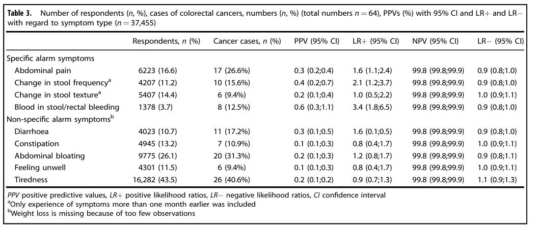 Predictive values of colorectal cancer alarm symptoms in the general population: a nationwide cohort study(British Journal of Cancer (2019) 120:595–600;)