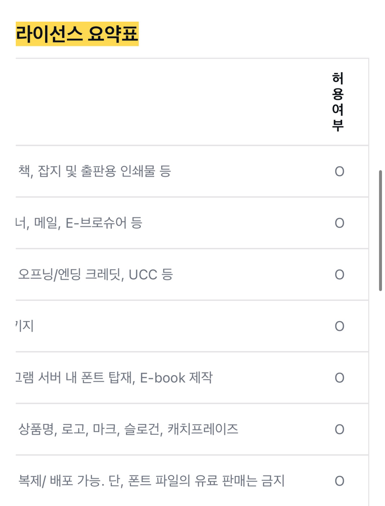 상업용으로 이용가능하게 명시된 글씨체라도 세부 조건이 있는 경우가 있어서 카페24에 문의를 해보는게 제일 정확해요.