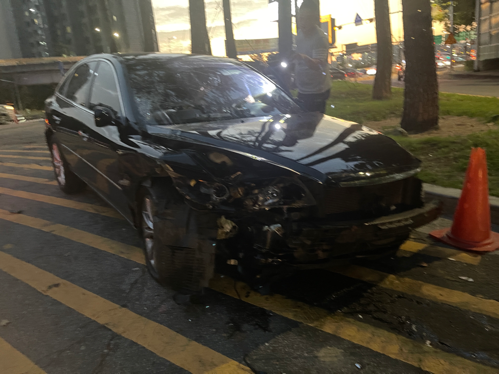 (가해차량은 볼보이며, 피해차량은 아버지 차량 그랜져, 반대차로 벤츠, 포터입니다. 피해차량은 3대 모두 폐차)