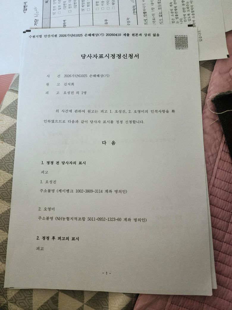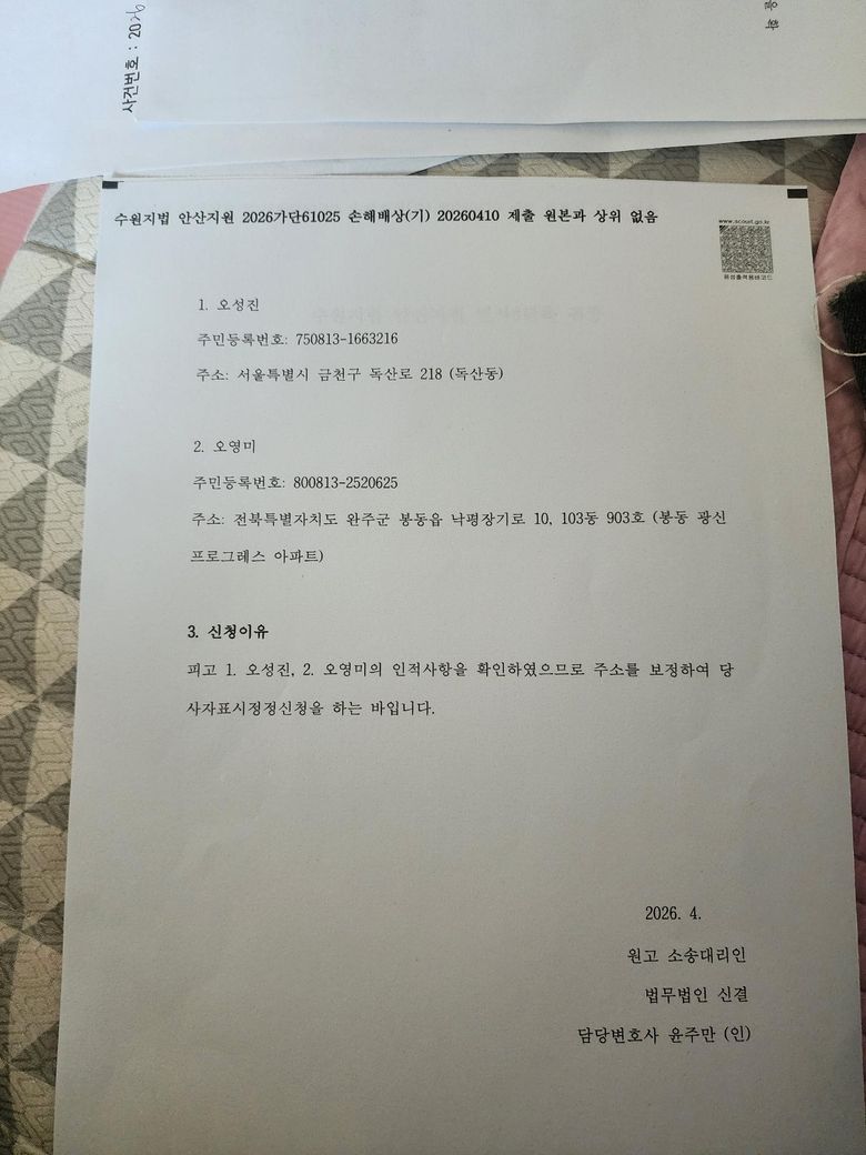 원고있이 손해배상정구를 해덨라고요