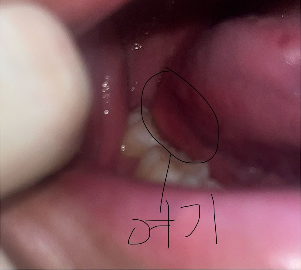 선명한 사진도 어렵지만 올리신 사진은 유독 어둡고 화질이 흐려서 병변이 잘 안보여요.