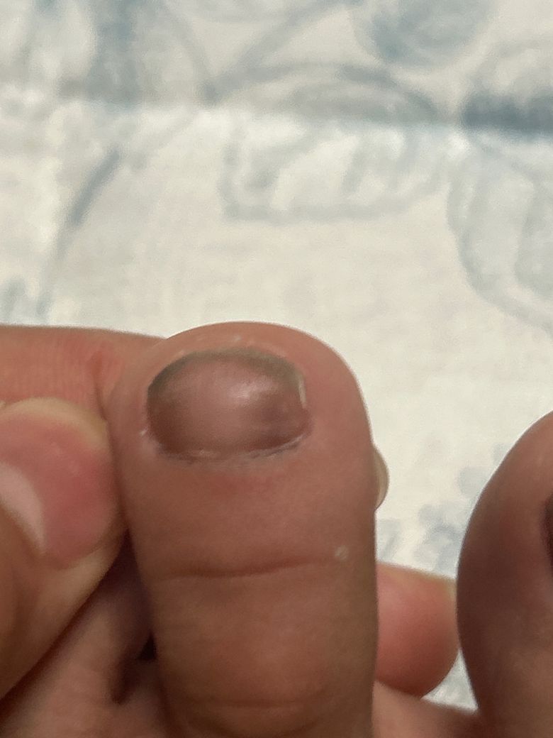 흑색종 보다는 발톱에 때가 낀 가능성이 있으며 혹은 양말이나 신발에서