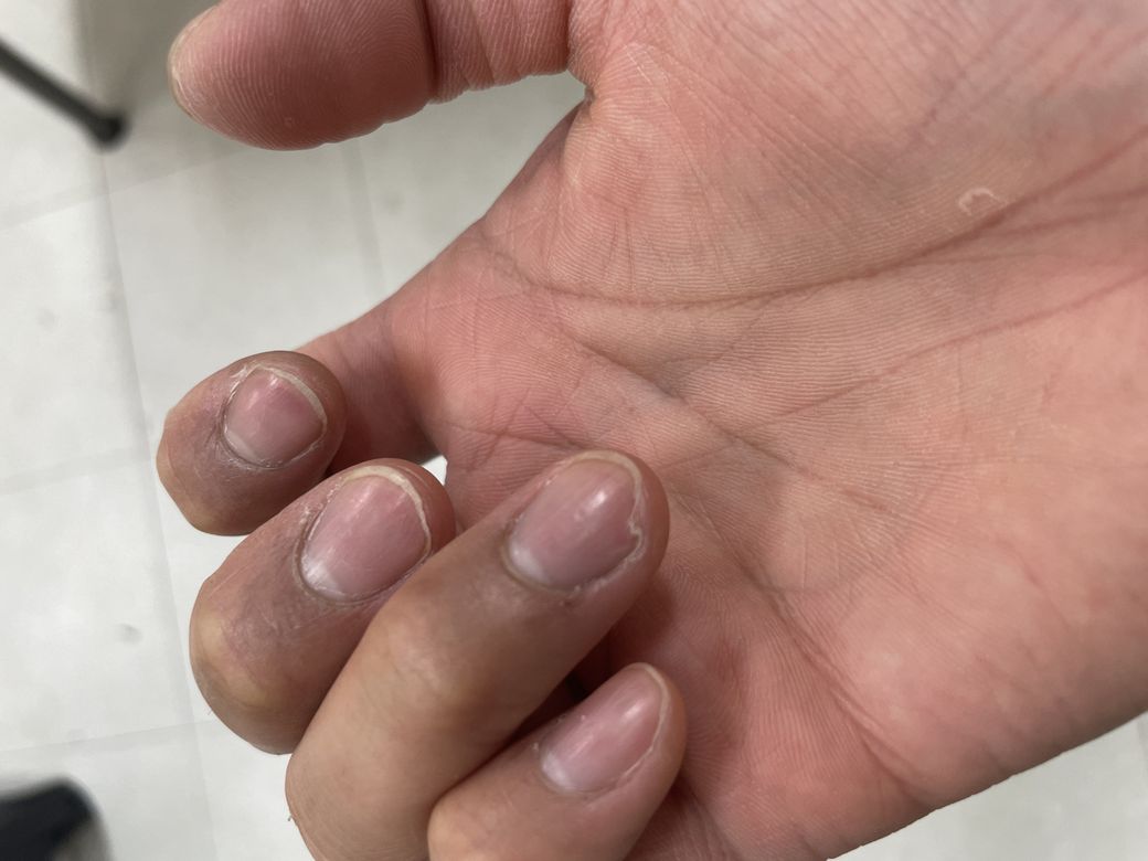 질문하신 내용에 대하여 아래와 같이 답변 드립니다.건선이 있거나 혹은 극심한 피로가 있는 경우. 단백질 공급이 원활하지 않은 경우. 혹은 갑상선 기능 저하 등의 질환을 생각해 보아야 합니다.