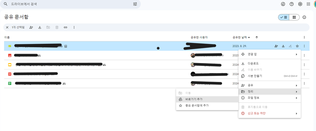 한참 예전에 공유받은 문서가 계속 보여서 불편하네요