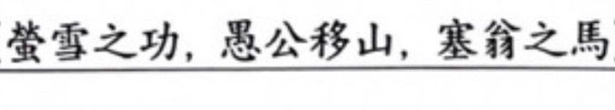 형설지공,우공이산,새옹지마 각각 사자성어 이며 뜻은 검색해 보시면 바로 알듯 합니다 형설지공은 고생하면서 공부해서 얻은 보람을 우공이산은 오랜시간이 걸려도 뜻을 위해 꾸준히 노력하면 뜻을 이룰 수 있다는 것이고 새옹지마는 인생사 길흉화복이 많아 변화무쌍하다 라는 뜻입니다.