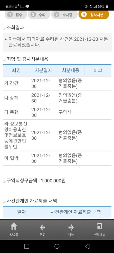 현재 폭행혐의에 대하여 혐의가 인정되어 약식처분이 이루어졌는바, 벌금 1백만원에 대하여 불만이 있다면 약식명령 송달일로부터 7일 이내에 정식재판청구를 하면 되겠습니다.
