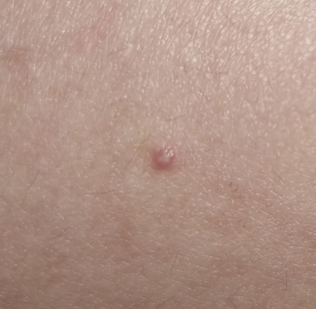 1개만 생겼고 농포가 생긴 것으로 봐서는 모낭염 같습니다. 더 퍼지지 않는다면 항생제 연고만 바르고 지켜보셔도 되겠습니다.