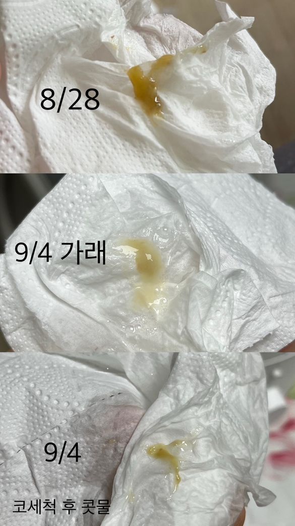 가끔 가다 코세척 후 콧물이나 가래가 (10에 1번 꼴로 9번은 투명해요) 이러면 가야하나요? 혼자 판단이 안 되어서ㅜㅜ 저게 야태 나온 것 중 제일 진한? 색이고 나머지는 투명이긴 해요...