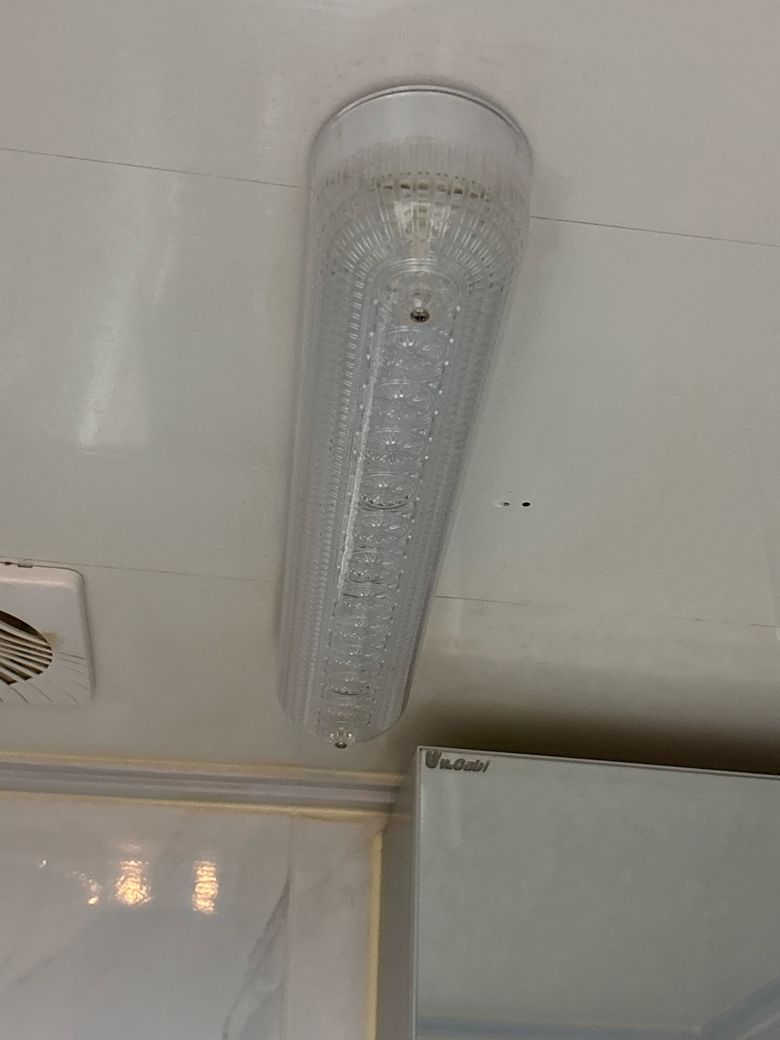 화장실 전등 커버는 보통 양쪽 끝에 나사가 있다면 나사를 완전히 푼 뒤에도 커버 중앙이 숨은 클립이나 걸쇠로 고정된 경우가 많아 손으로 아래로 잡아당겨야 빠지는 구조입니다. 커버를 돌려서 푸는 방식(반시계 방향 회전)도 있으니, 회전과 아래로 당기기를 번갈아 시도해보세요. 너무 세게 당기지 말고 양쪽을 고르게 잡아 천천히 내리면 커버가 분리됩니다. 커버가 전혀 움직이지 않으면 손바닥 전체로 가볍게 두들긴 뒤 다시 당겨보세요. 스프링 클립형이나 돌려서 빼는 방식 둘 다 아니면 사진처럼 아래로만 똑바로 당겨서 빼시면 됩니다.