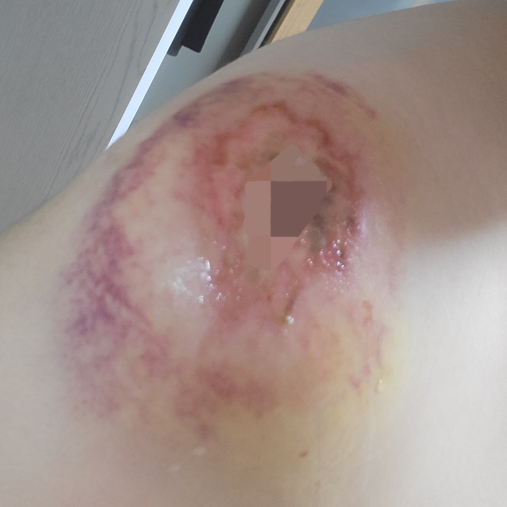 당시 어깨는 피 혹은 진물이 크게 나지 않아 별도 드레싱을 하지 않았습니다.