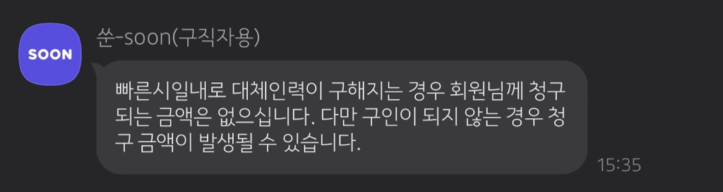 또 제가 그럼 대체근무자를 빨리 찾을 수 있게끔 새로운 공고는 바로 올라가는 것이냐고 물었더니 그렇다고 하셨는데 몇시간이 지나고 아무리 어플을 찾아봐도 새로운 공고는 안 올라오더군요