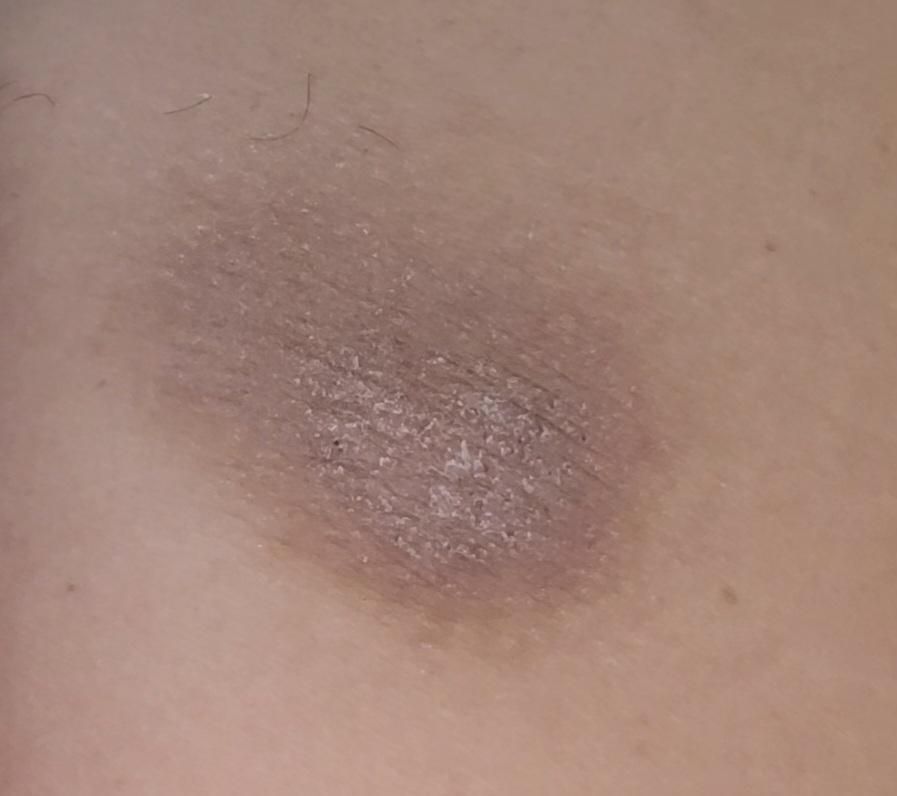 사진 소견으로 보면 엉덩이 국소 부위에 색이 짙어지고 피부가 거칠어 보이며 각질이 동반된 상태입니다. 이 부위는 마찰·압박이 반복되기 쉬워 만성 자극으로 색소침착과 피부 비후가 생기기 쉽습니다. 장시간 앉는 습관, 꽉 끼는 옷, 반복적인 긁음 등이 흔한 원인입니다.