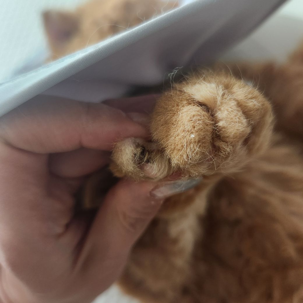 일주일 전 싱크대에서 떨어져 발톱이 빠지게 되어서 병원에서 항생제 주사 맞고 소독약 받아와서 하루에 화장실 갈 때마다 소독을 간단히 해주었습니다.(가볍게 톡톡 하라고 하셔서 탈지면에 적셔 해줌)