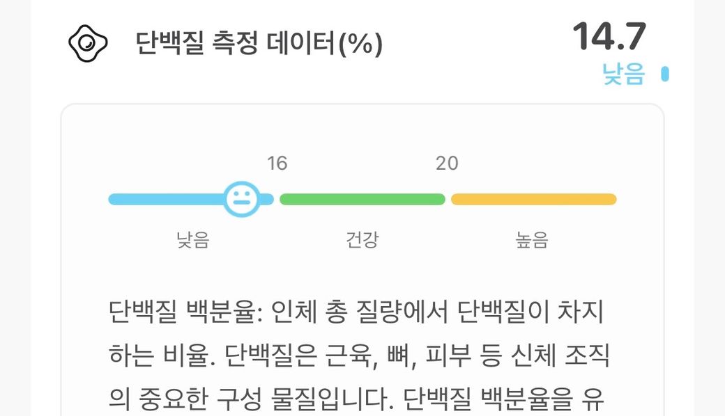 단백질 수치가 유지되도록 식단을 짜길 권합니다. 단백질이 저하시에 에너지 대사가 떨어져 피로감을 느끼기 쉽고, 면역저하, 상처치유가 저하될수 있습니다.