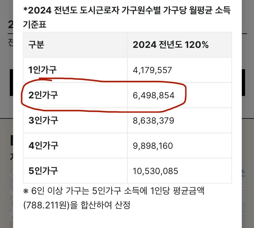 하기와 같이 2인 기준 월급 합산 금액이 6,498,854원 이하면 되나요??