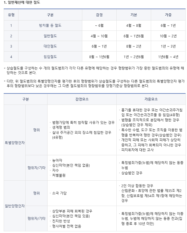 질문하신 내용에 대하여 아래와 같이 답변 드립니다.절도죄의 양형기준은 아래와 같습니다.