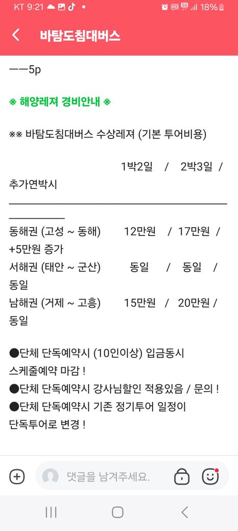 해양레저전용 투어침대버스는 자가용 영업이 불가능하니깐 네이버밴드로 취미모임으로 운영해야죠? 요금을 받으면 불법유상운송이고 회비 참가비를 받아야죠?
