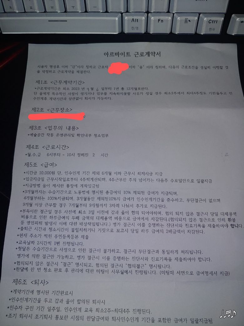 회사측에서 제시한 계약서 한장 첨부합니다.