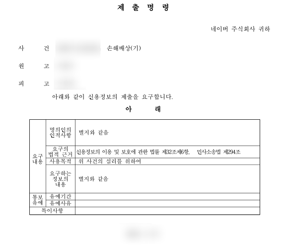사실조회신청서는 3월25일에 내고, 이틀뒤에 제출명령(신용정보)라는게 법원측에서 왔습니다.(사진과 같이)