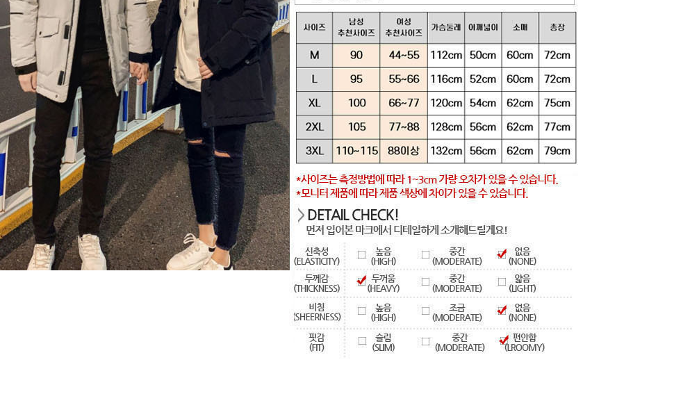 그 옆에 남성,여성 사이즈는 자신이 입는 사이즈를 참고해서 주문하라는 뜻입니다.