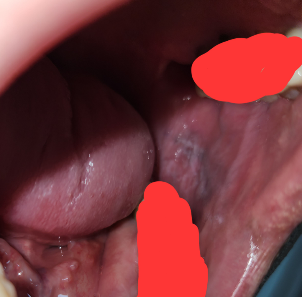 사진이 흐리기도 하고, 정확한 판단을 위해서는 직접 확인하는 것이 필요하답니다. 볼의 혈관이 보랏빛으로 보이는 것 같기는 하네요. 하얗게 줄처럼 보이는 것은 백선이라고 물리적 자극이 반복되어 생기는 흉터의 일종이라고 보면 됩니다. 당장은 심각한 문제는 없을 수 있어도 앞으로를 위해서는 절주와 금연을 실천하셔야 될 것 같습니다.