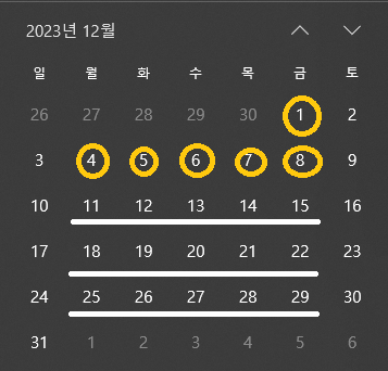저의경우 12/1은 최저시급X8(2023년기준)+12월 둘째주 주급(주휴수당포함, 최저시급적용)+
