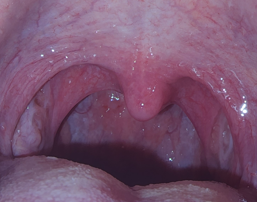 부종 등은 심하지 않지만 일부 충혈이 되어있는 것으로 보여 인후두염이 있으신 것 같습니다.