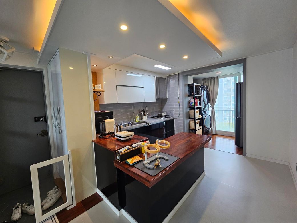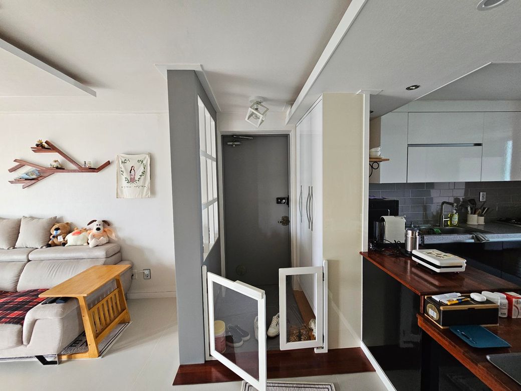 지금 사진상 중문 설치는 가능합니다 그렇지만 왼쪽 진열장 같이 생긴 거 그거를 빼야 하고 그 쪽에 같이 중문을 만들어야 하기 때문에 그거를 치운다는 가정하에 중문 설치는 가능합니다 그렇기 때문에 일단은 중문 설치를 하실 거면 업체에 문의해 보시고 설치는 가능하기 때문에 문제 없습니다