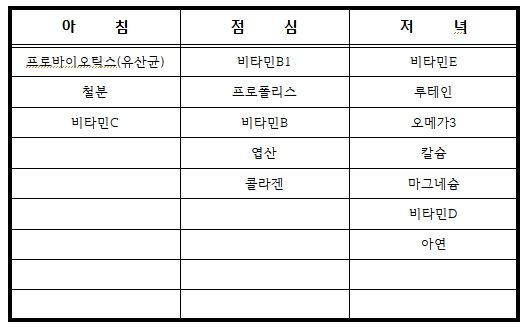 표 보시고 같이 먹으면 안되거나, 같이 먹어야 하는 영양제가 있다면 알려주세요!