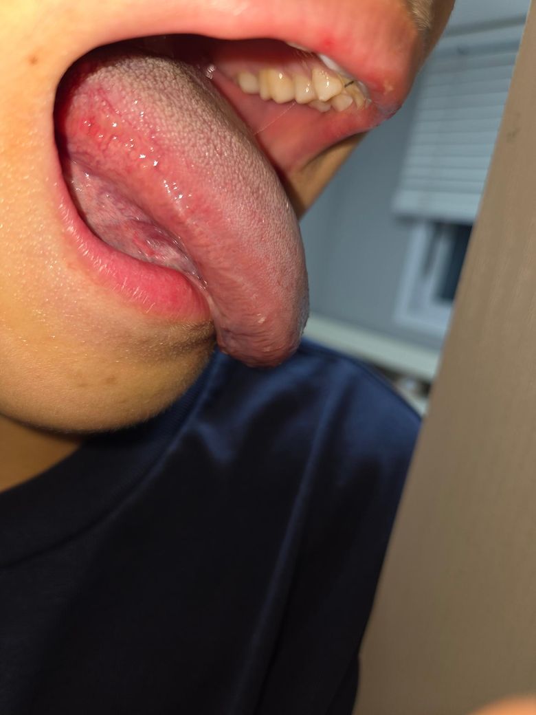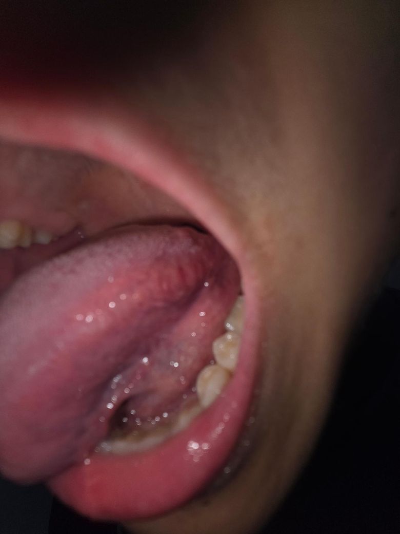 사진으로는 정확한 확인이 어려워 보입니다. 혀가 이빨이나 그 외에 다른 조직에 의해서 자극이 되었다면 해당 부위에 투면이 다르게 보일 수 있습니다. 이런 경우 혀에 가해지는 자극을 줄여준다면 해당 부위가 줄어들 수 있습니다.