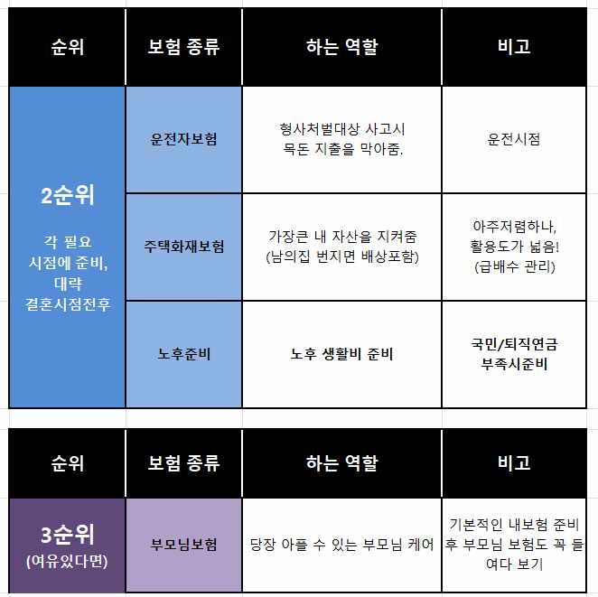 이렇게 보험료 예산에 따라 순서대로 준비하시면 됩니다.