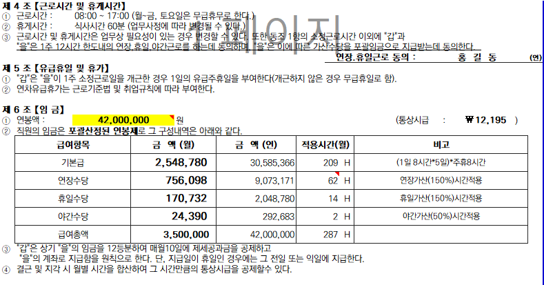 근로계약서를 새로 만들라고하셔서 이곳 저곳 알아보고