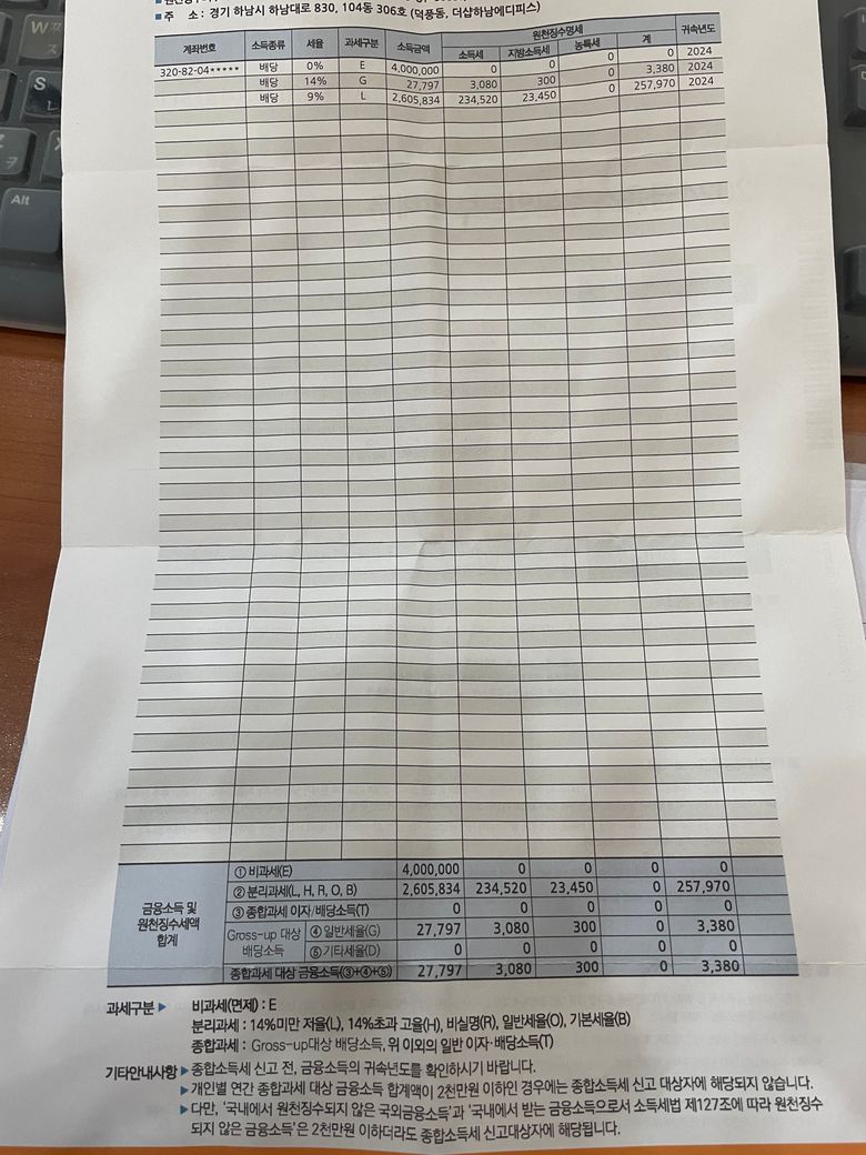 말 그대로 금융소득 영수증을 우편으로 처음 받았는데 작년에 ISA만기가 되어서 해지했거든요 제가 여기서 추가로 세금