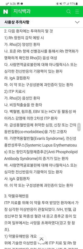 그러다 찾아보니 에반스신드롬에 윈로에스디에프 주사액을 투여하면 안되는것 같은 주의사항을 봤는데ㅠㅠ