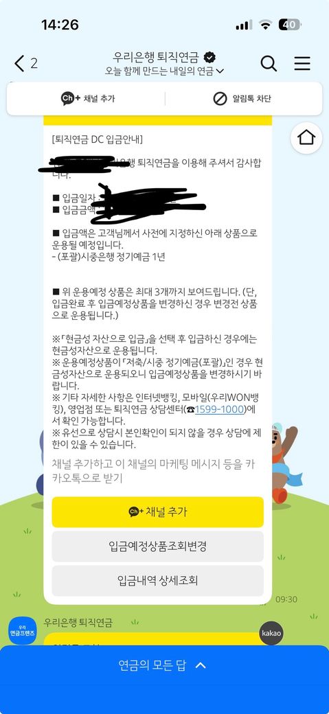 이 때문에 퇴직연금 계좌에서 디폴트 옵션을 지정하거나 본인이 직접 운용할 상품을 지정하라는 의미 입니다.