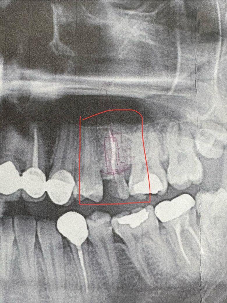 금일 가까운 동네 치과에서 사진 촬영과 함께 상담을 받아본 결과, 촬영된 사진은 아래 사진 처럼 나왔구요 동네 치과에서는 무조건 발치한 이후 임플란트를 진행 해야한다고 답변을 받았습니다.